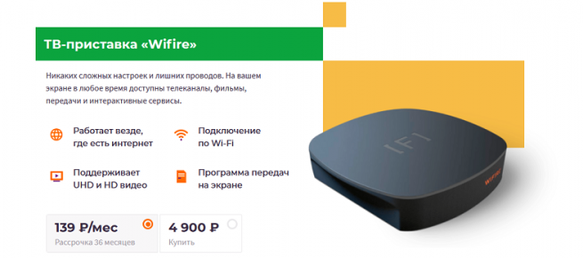 Если приобретать оборудование сразу, то оно обойдется 4900 рублей. Но роутер тоже будет необходим при подключении интернета вместе с ТВ И такие траты могли не входить в Ваши планы. В таком случае провайдер предлагает приобрести приставку в рассрочку: